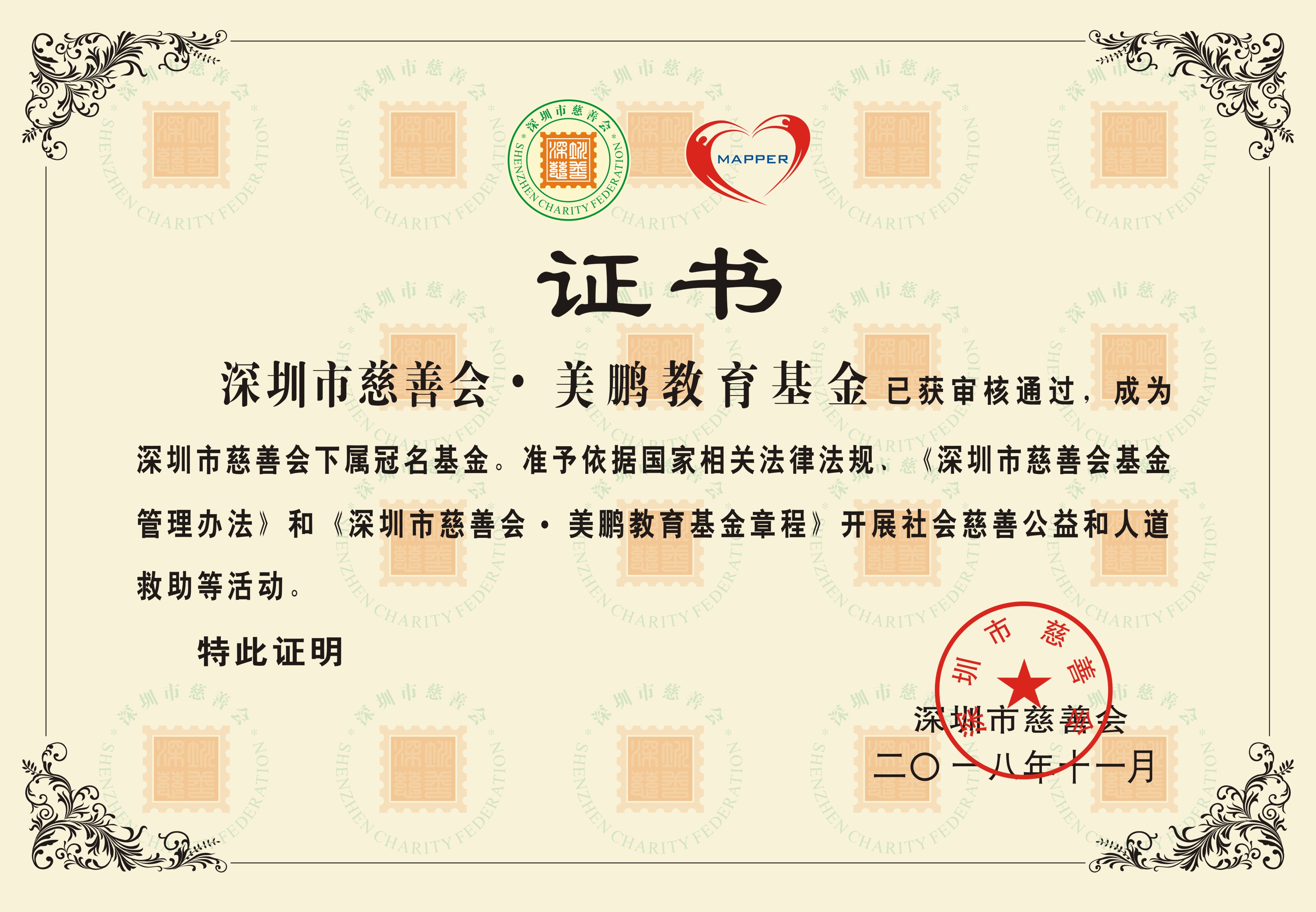 2018年12月6日,美鵬教育基金會(huì)會(huì)長楊莉受邀參加深圳市慈善會(huì)的基金授牌儀式,現(xiàn)場(chǎng)接受慈善會(huì)頒發(fā)的授權(quán)證書,這意味著深圳市慈善會(huì) · 美鵬教育基金正式成立。